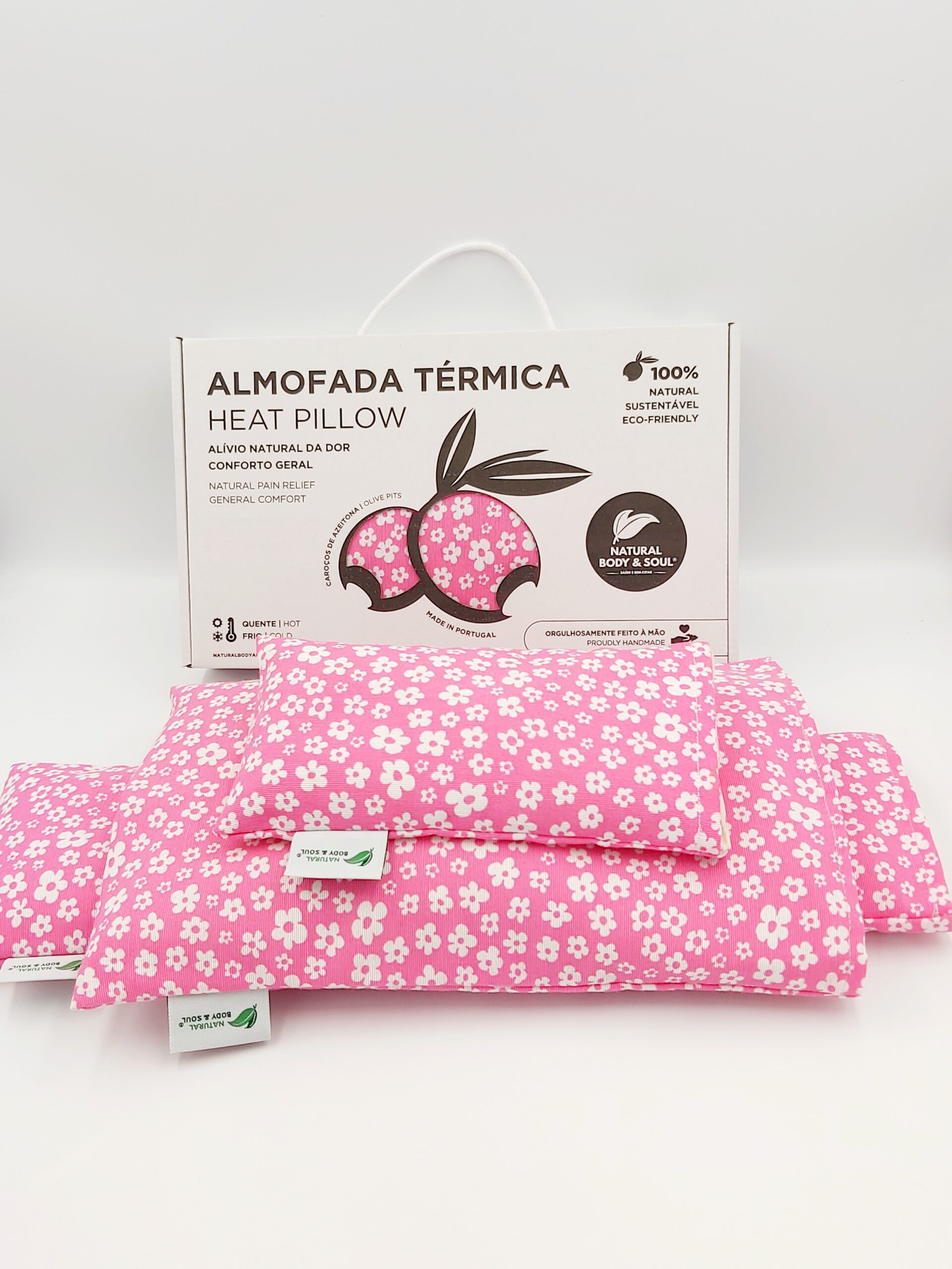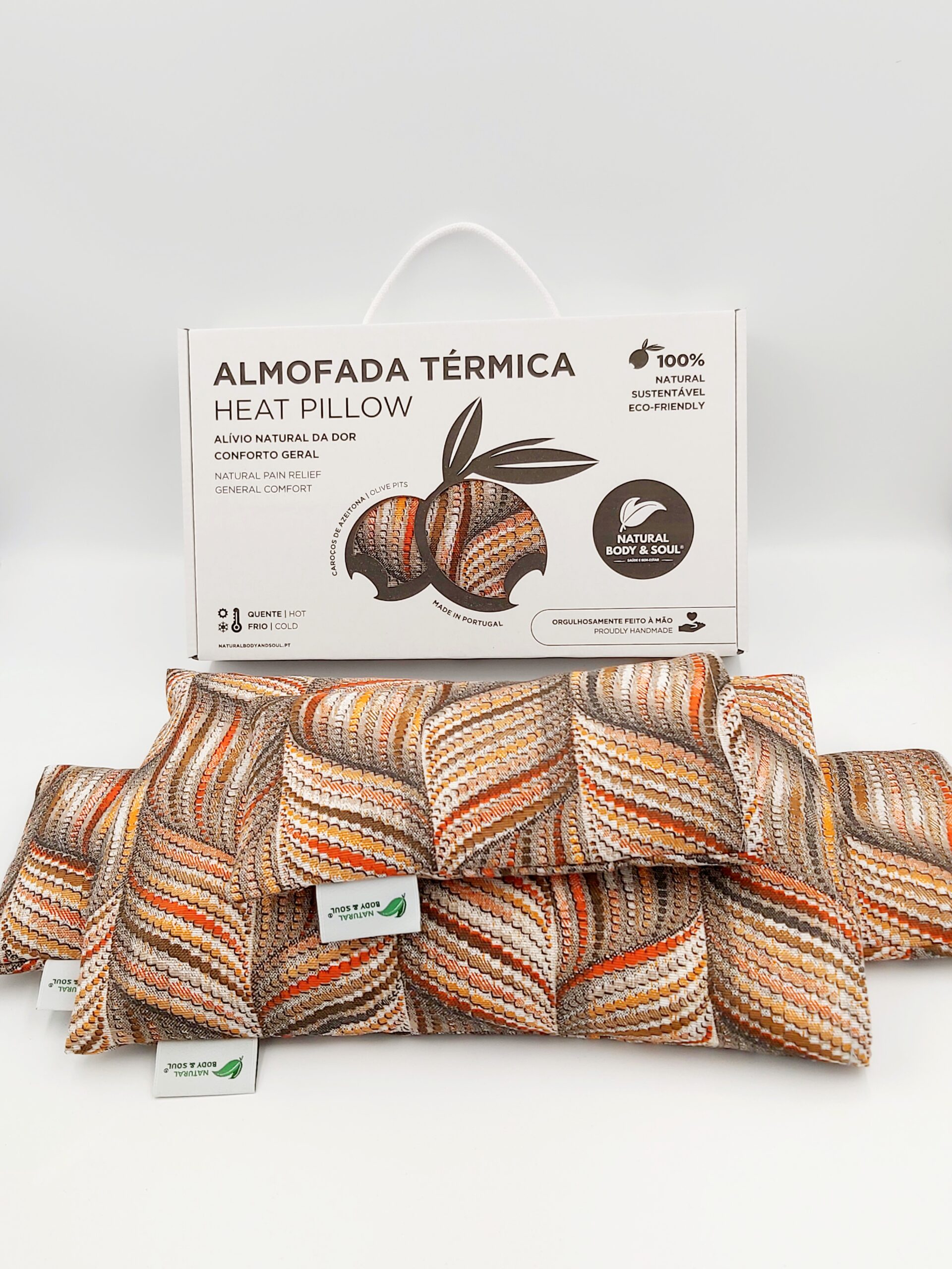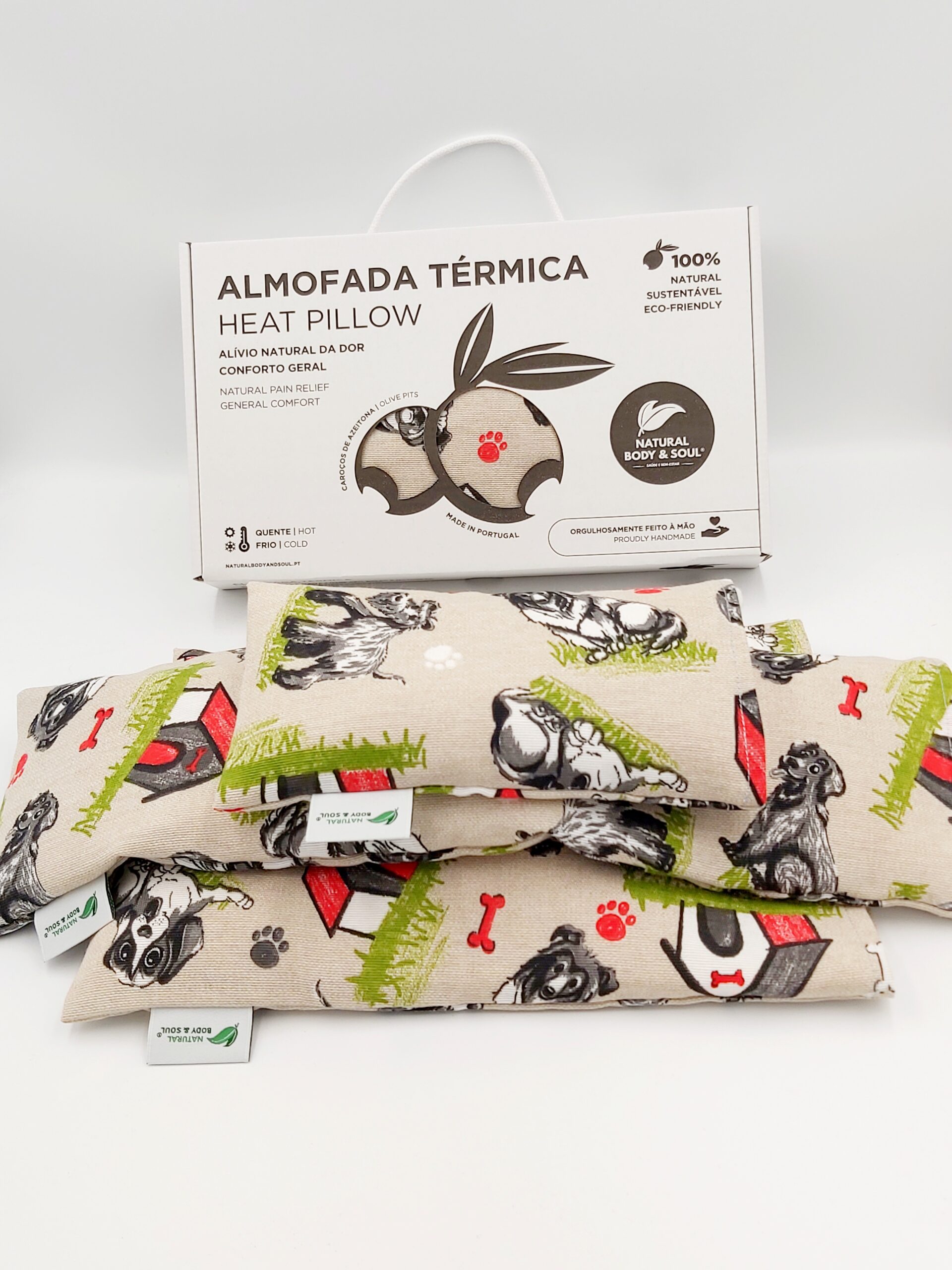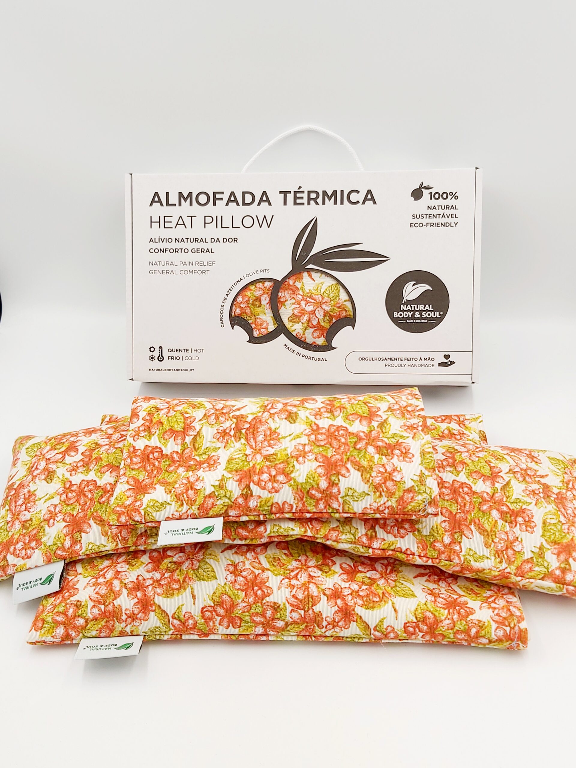 - RECHEIO: Materiais 100% naturais e ecológicos, tais como Caroços de Azeitona e Ervas Naturais (Alfazema ou Alecrim)