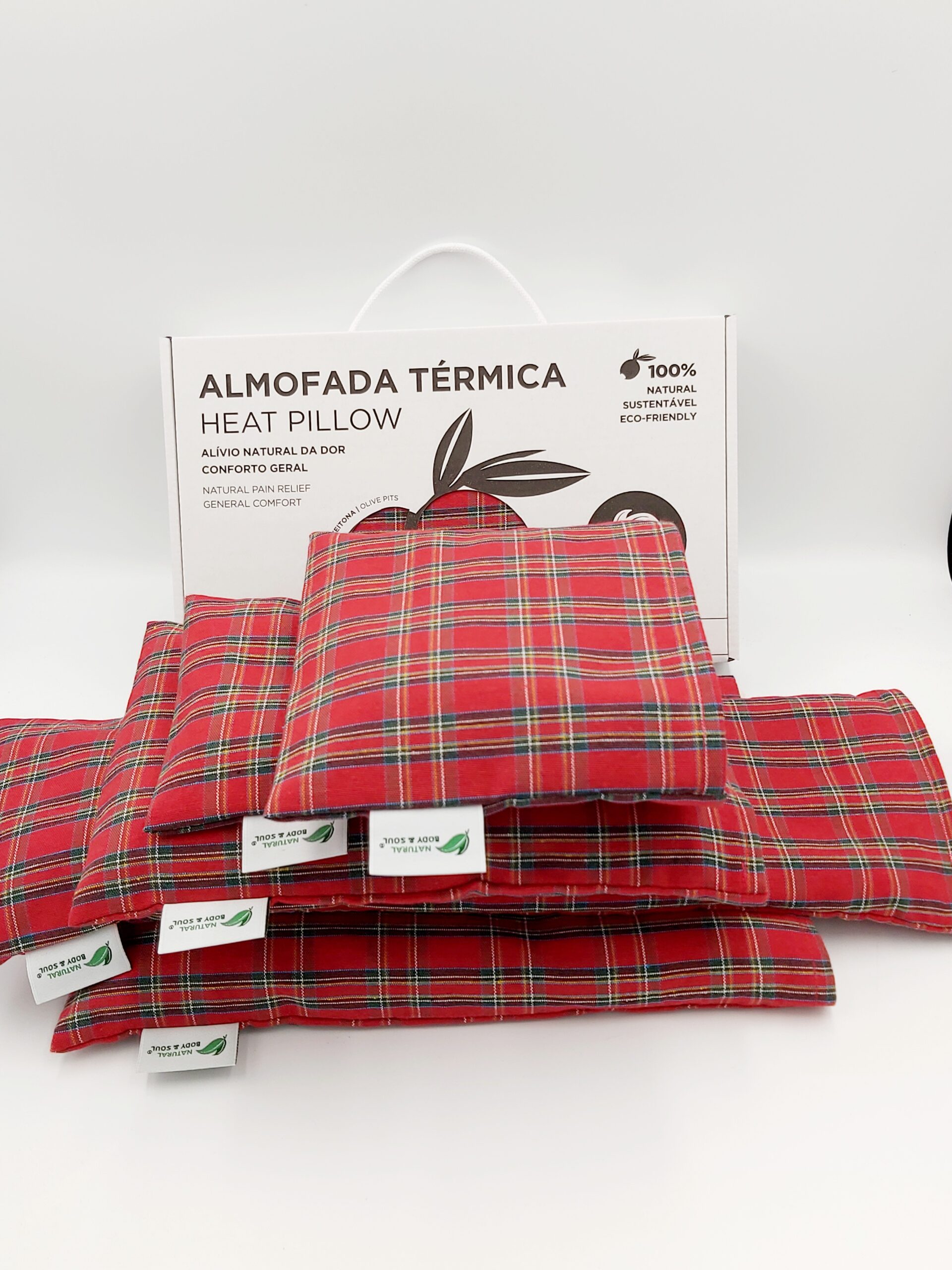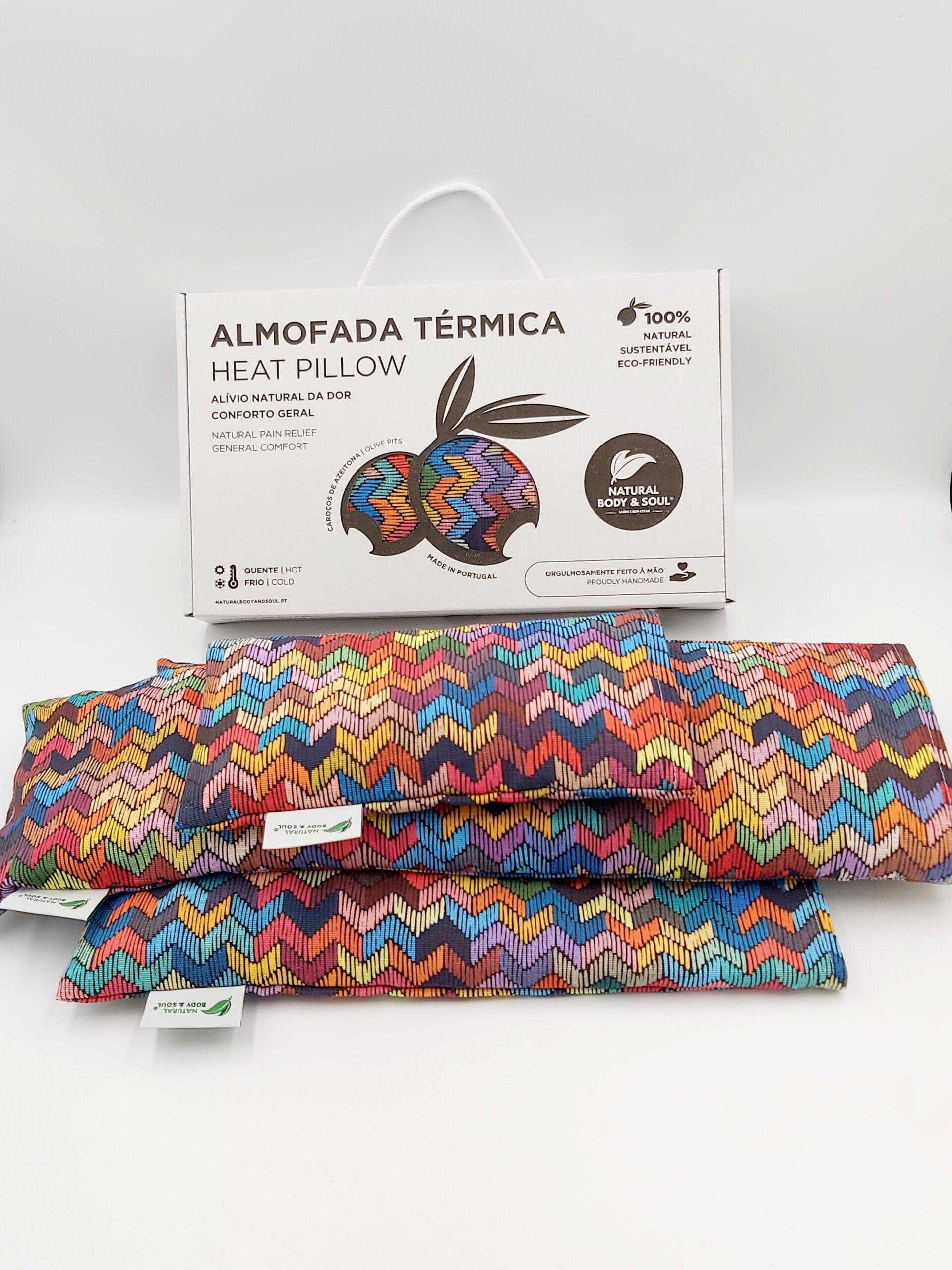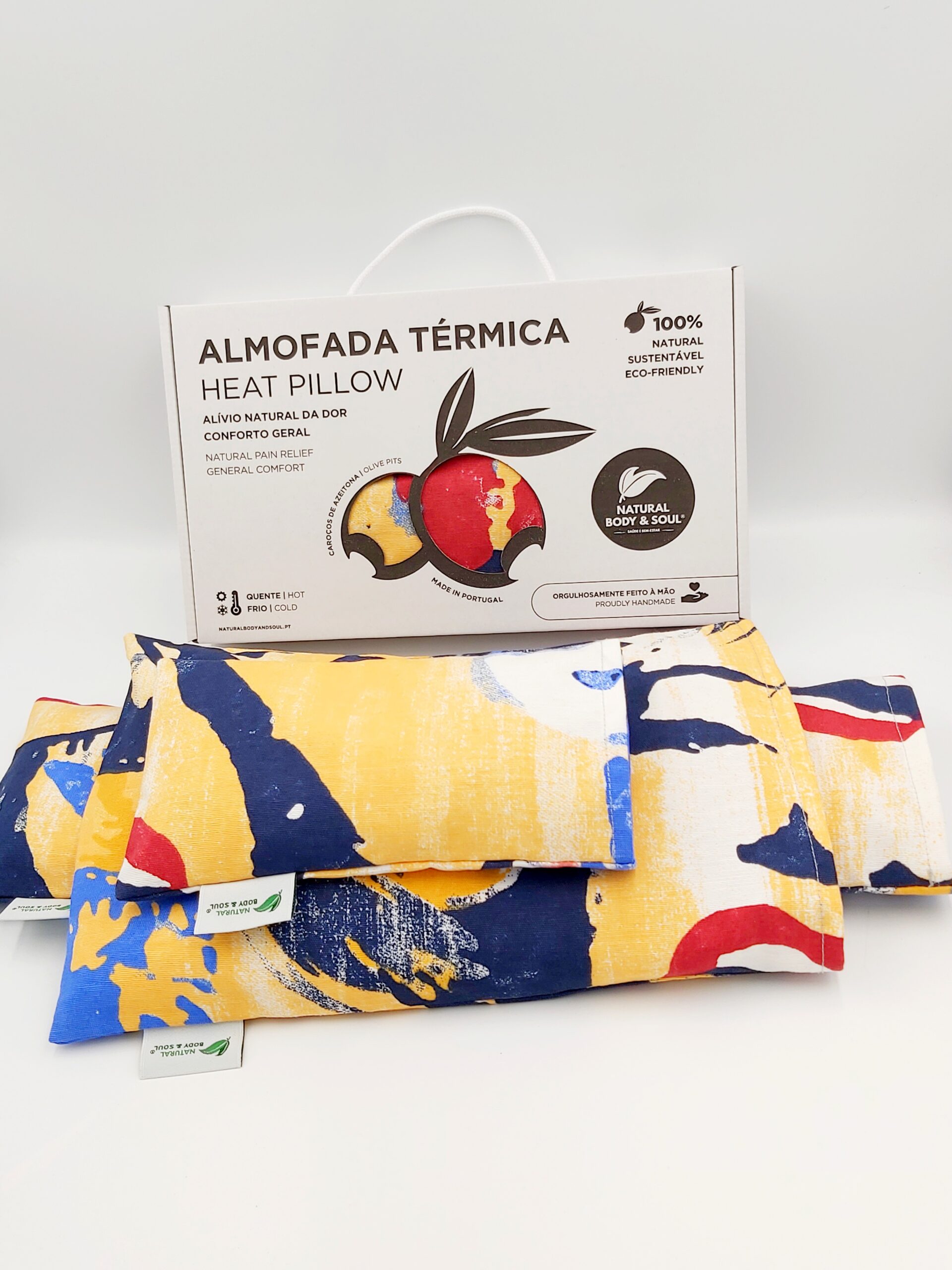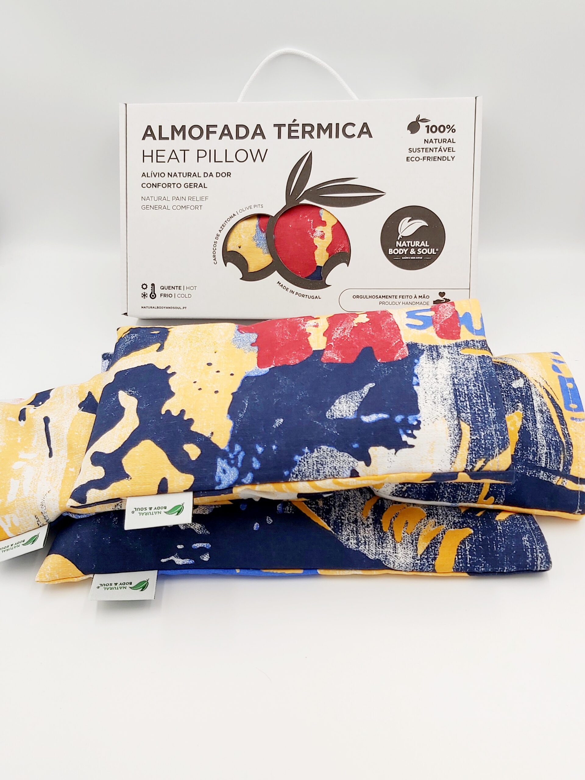 - RECHEIO: Materiais 100% naturais e ecológicos, tais como Caroços de Azeitona e Ervas Naturais (Alfazema ou Alecrim)